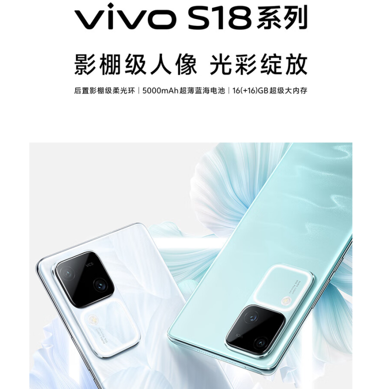 商品名称:vivo S18 12GB+256GB 青澈 全网通5G新品手机第三代骁龙7旗舰芯前后5000万超光感拍摄120Hz朝阳护眼屏80W闪充 手机