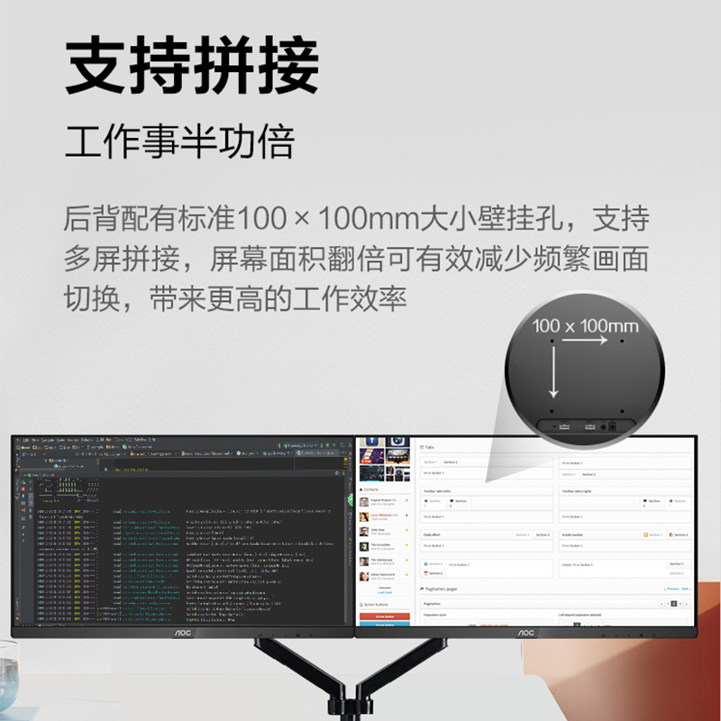 商品名称:AOC 24英寸AH-IPS办公电竞100Hz显示器台式电脑屏幕外接27壁挂24B31H