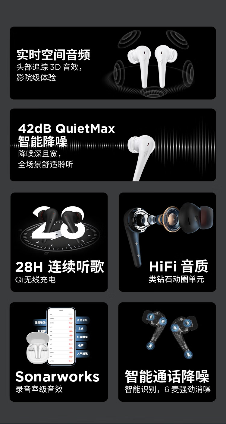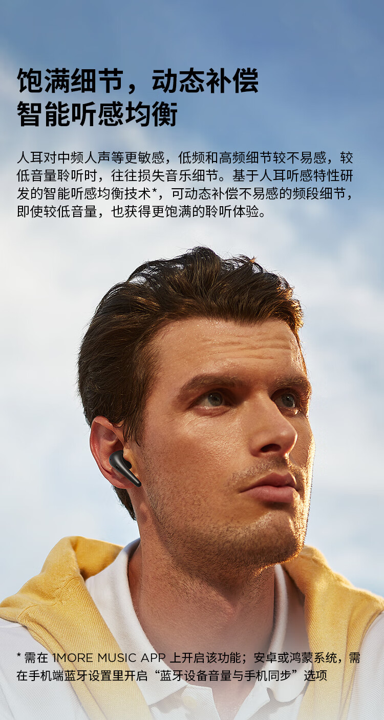 1MORE Aero万魔蓝牙耳机 无线降噪耳机 空间音频 手机耳机 ComfoBudsPro升级 适用于华为白色
