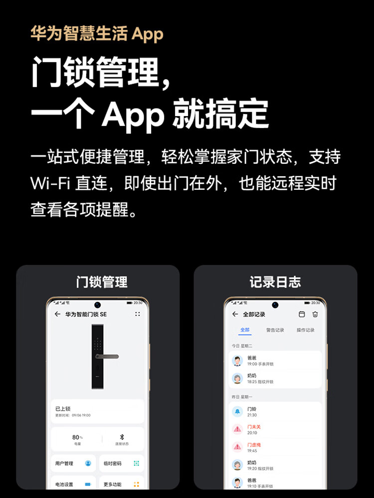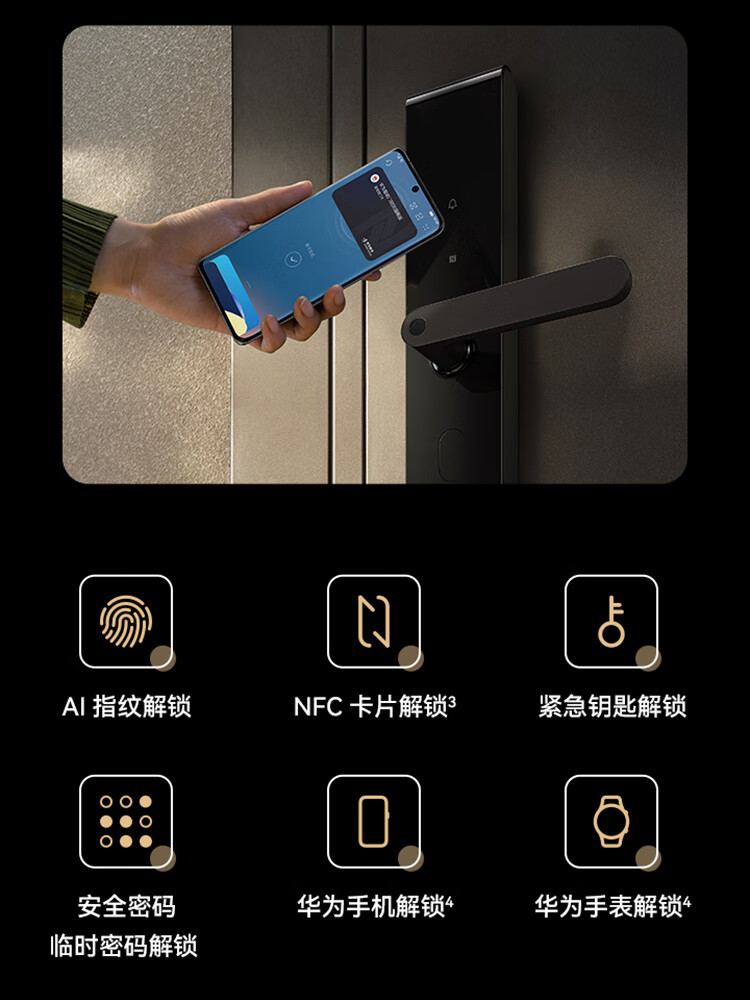 商品名称:华为智能门锁 SE标准版 AI指纹锁 15个月超长续航 电子门铃 家用防盗门密码锁 NFC电子锁AGS-L10