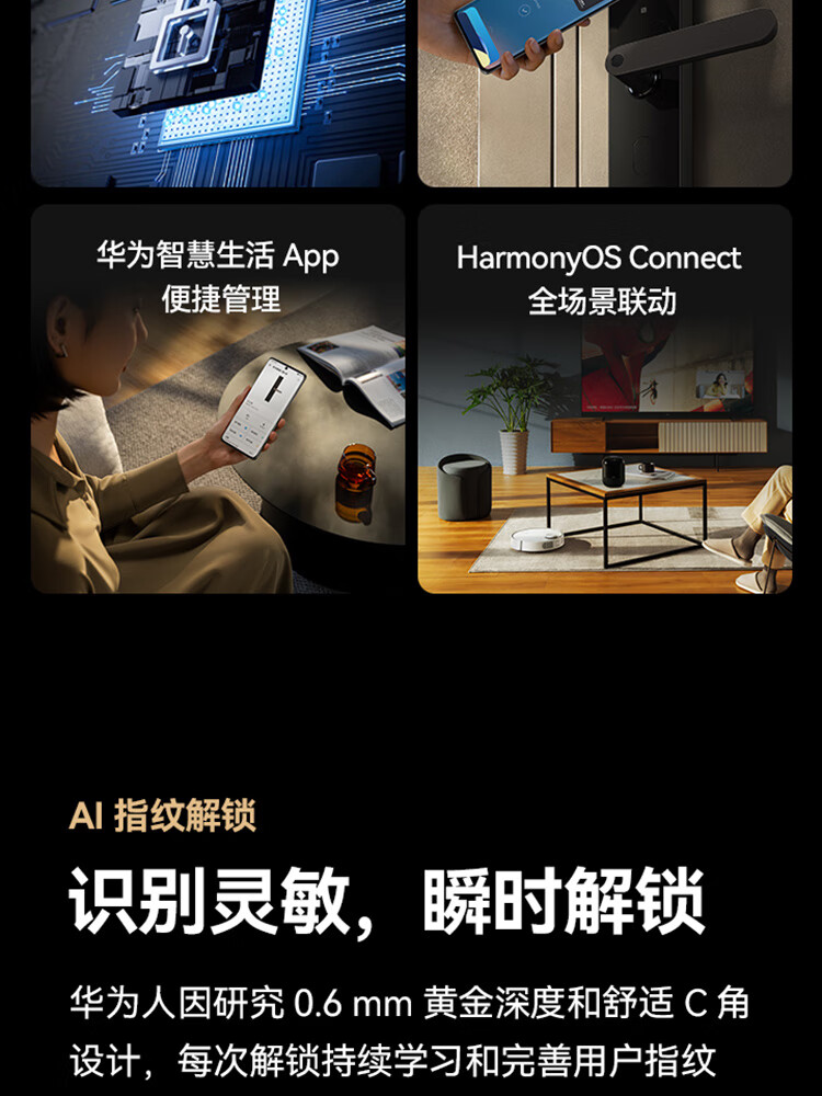 华为智能门锁 SE标准版 AI指纹锁 15个月超长续航 电子门铃 家用防盗门密码锁 NFC电子锁AGS-L10
