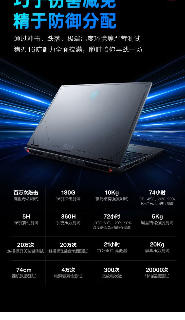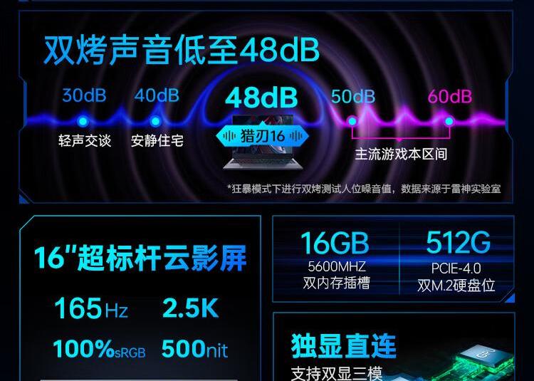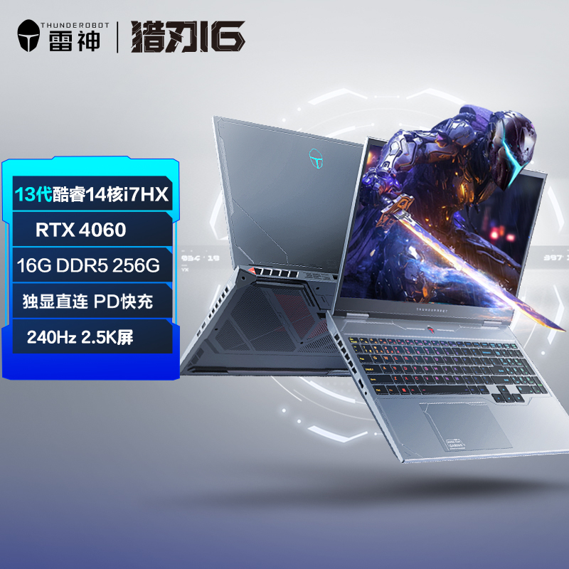 商品名称:雷神(ThundeRobot)猎刃16 16英寸游戏本笔记本电脑畅玩黑神话悟空(酷睿14核i7-13650HX 16G 512G 4060 240Hz 2.5K)