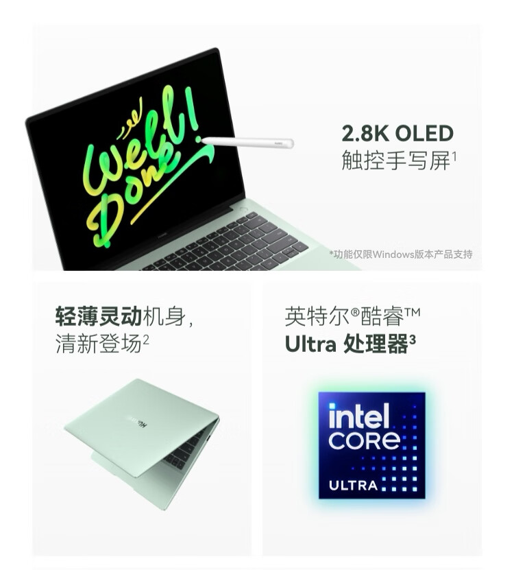HUAWEI MateBook 14 Linux版 酷睿 Ultra 5 16GB 1TB 皓月银 2.8K OLED触控屏 笔记本电脑