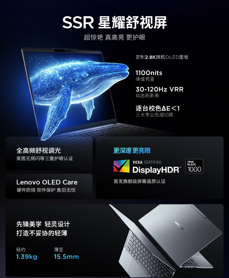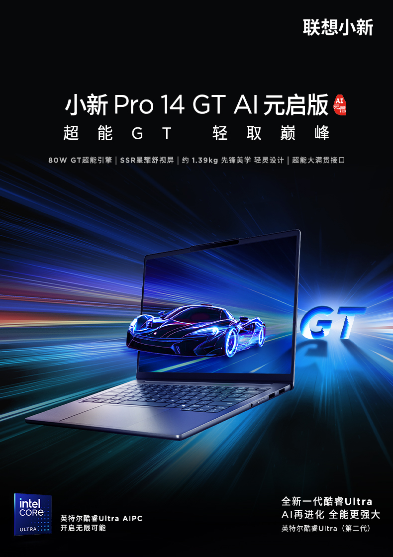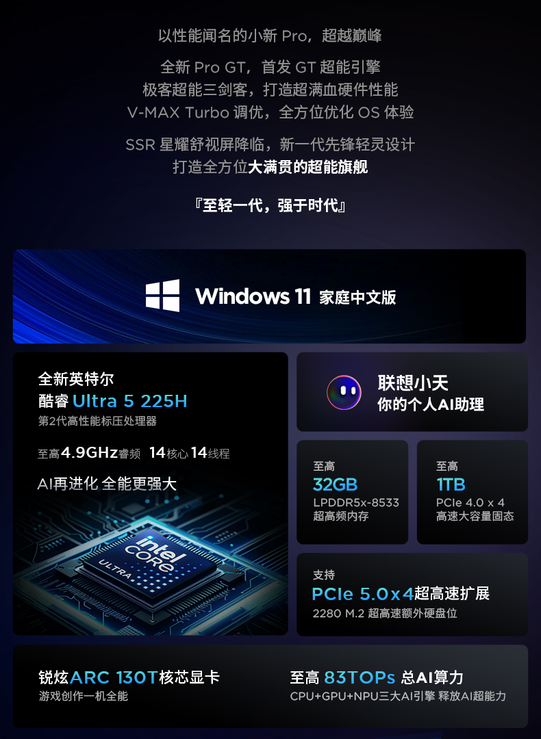 联想小新Pro14GT AI元启版14英寸轻薄笔记本电脑(全新英特尔酷睿2代标压Ultra5 32G 1T 2.8K OLED 120Hz)