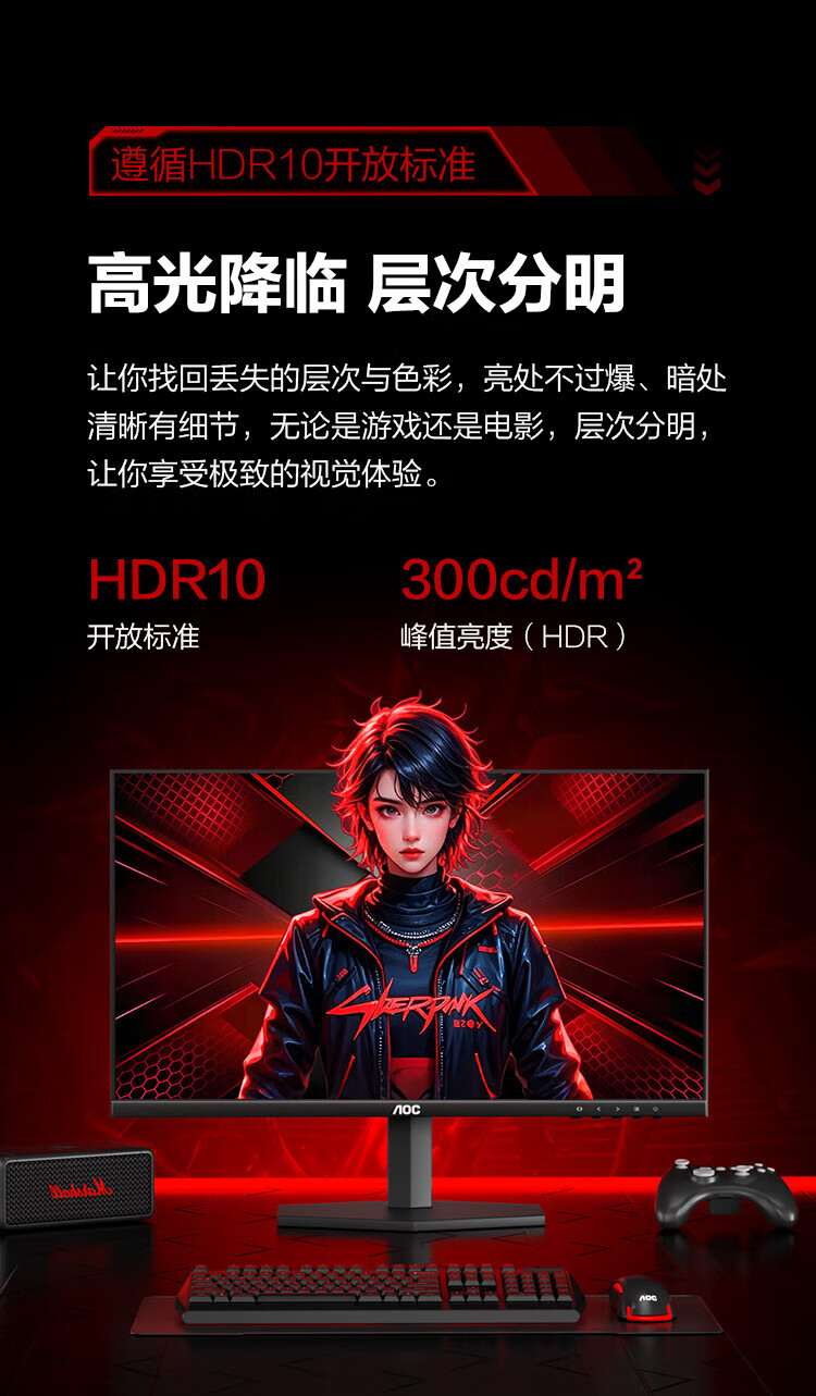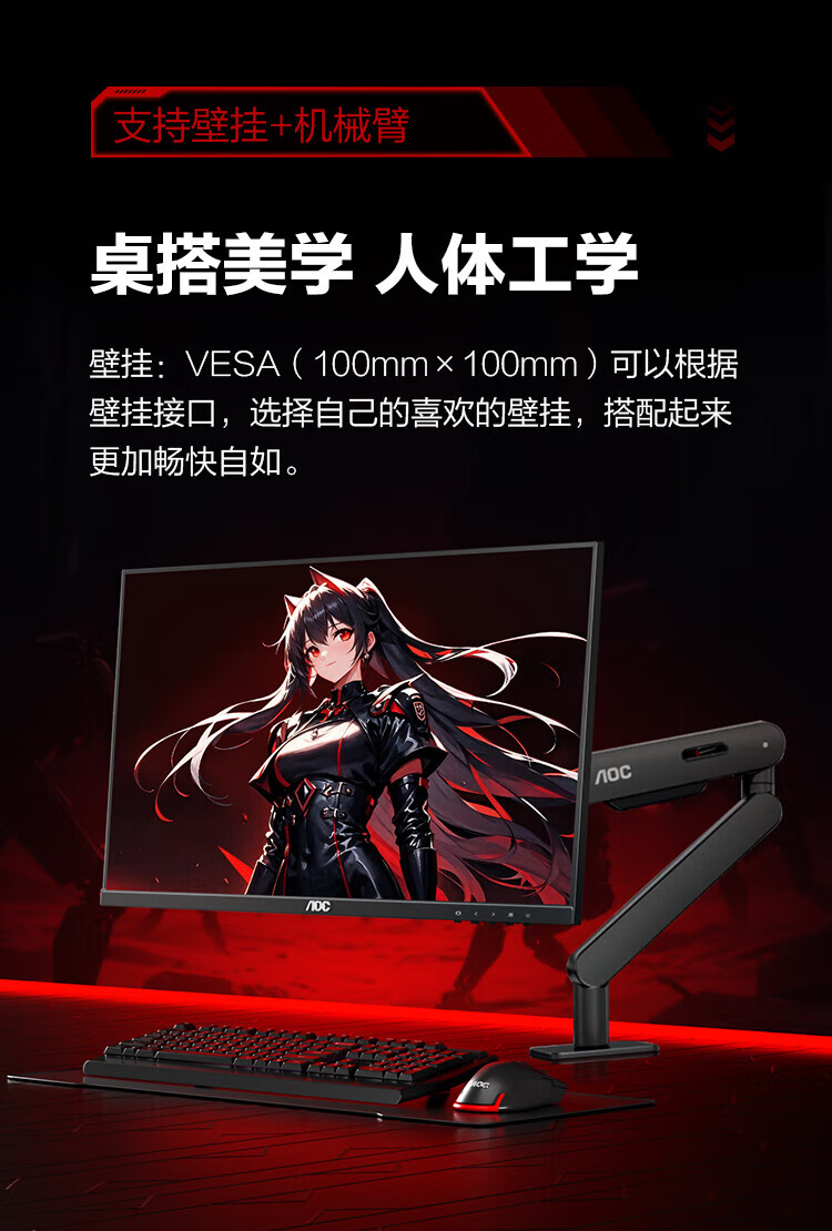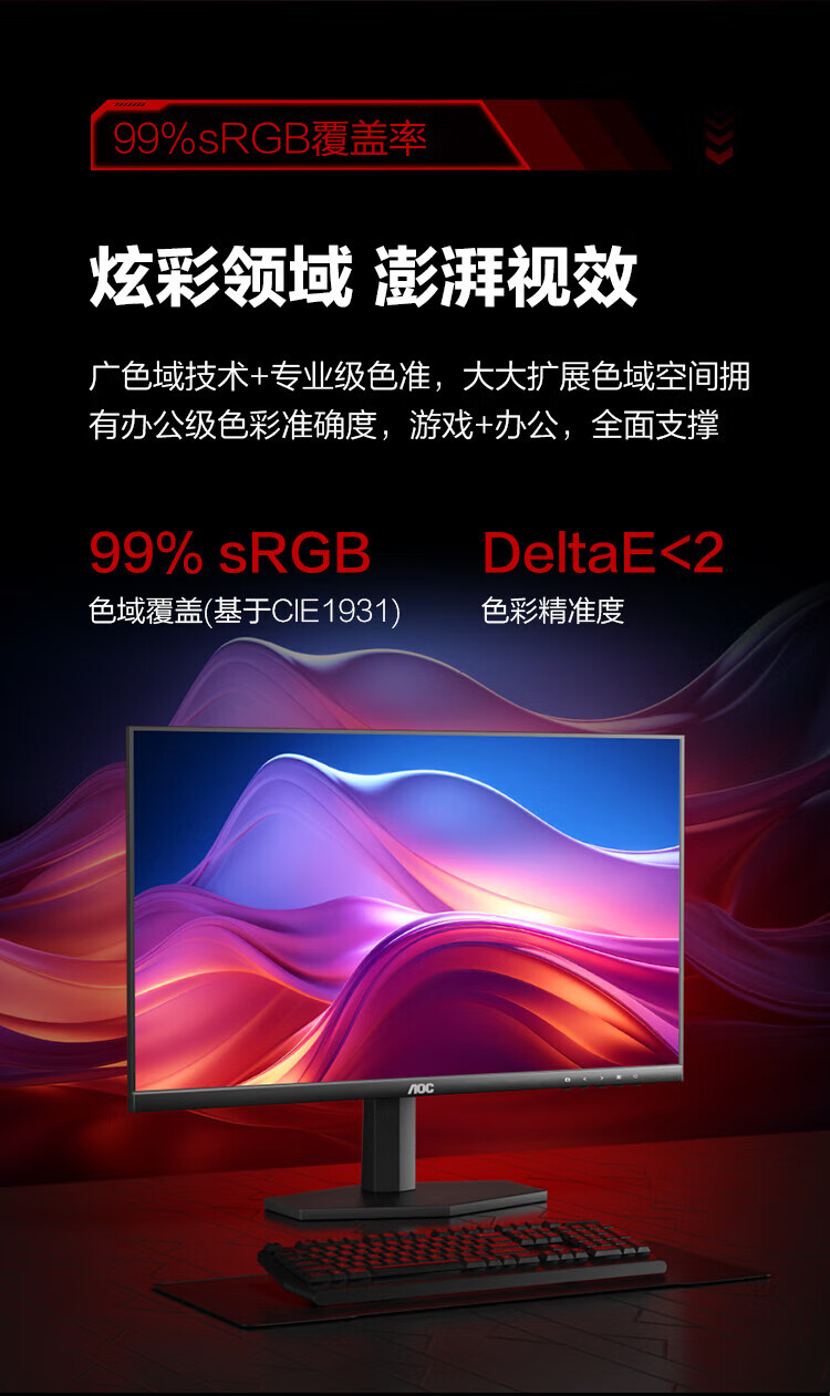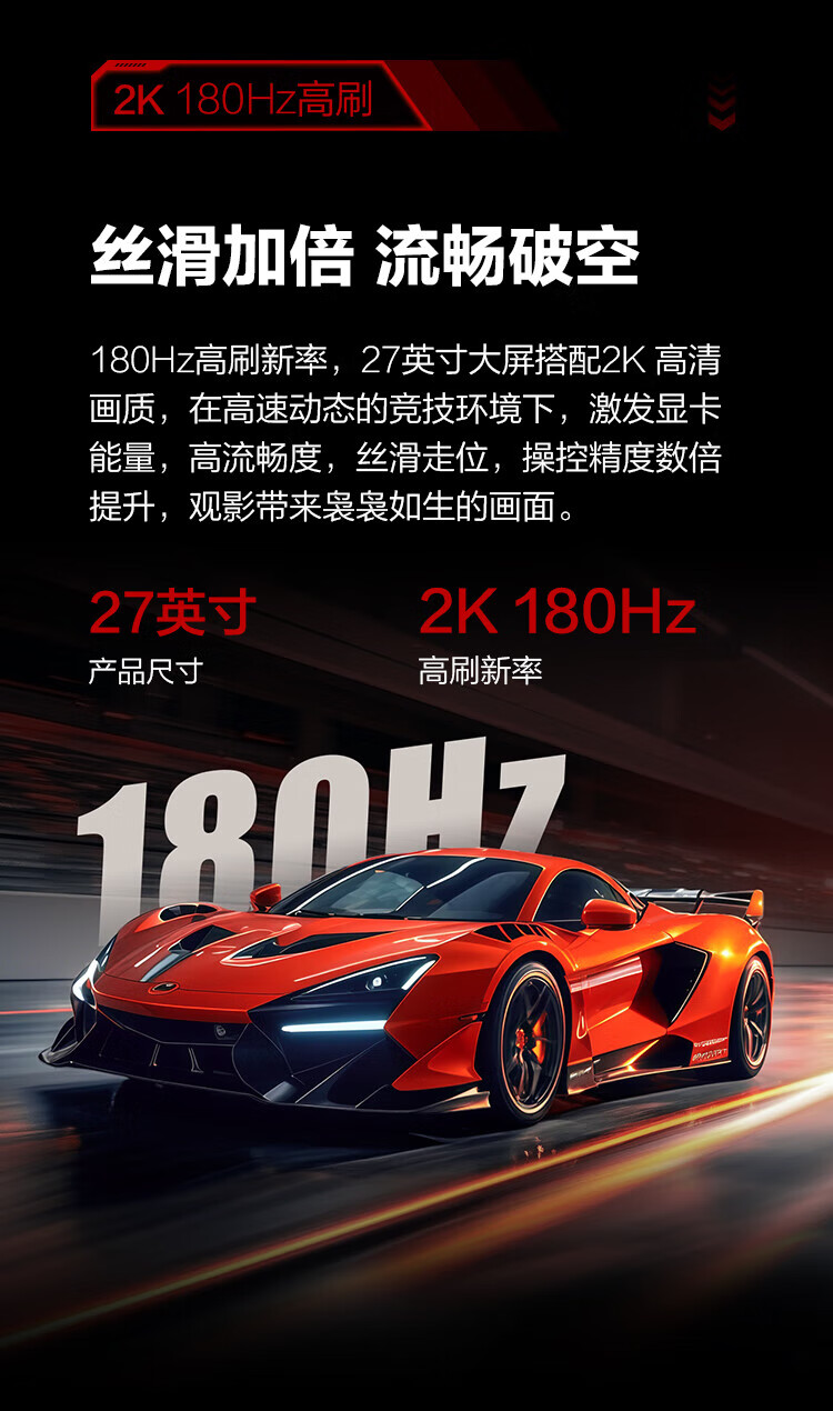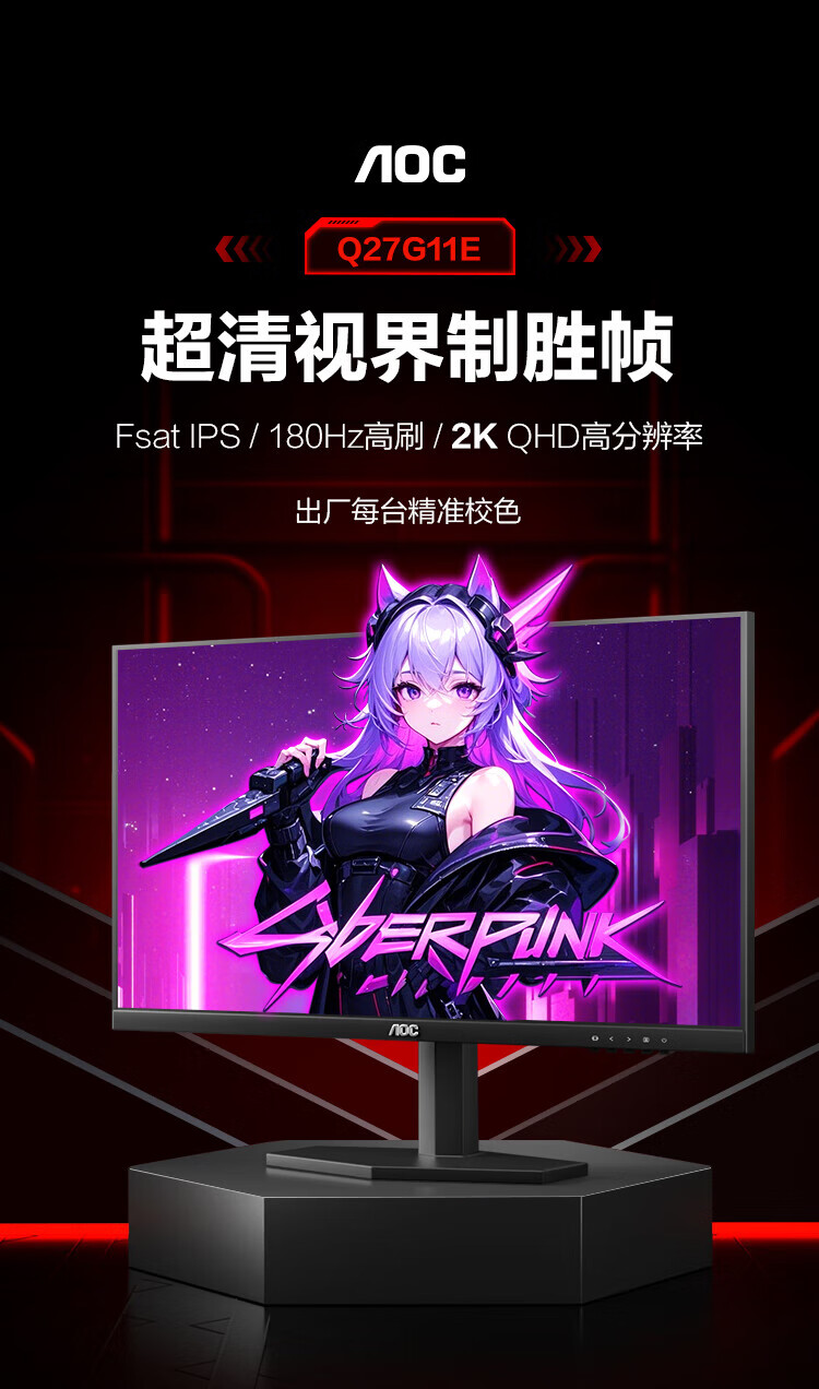 AOC Q27G11E 27英寸2K 180HZ电竞显示器Fast IPS硬件低蓝光面板1MS GTG响应外接笔记本电脑高清显示屏幕 2K原生180HZ Q27G11E
