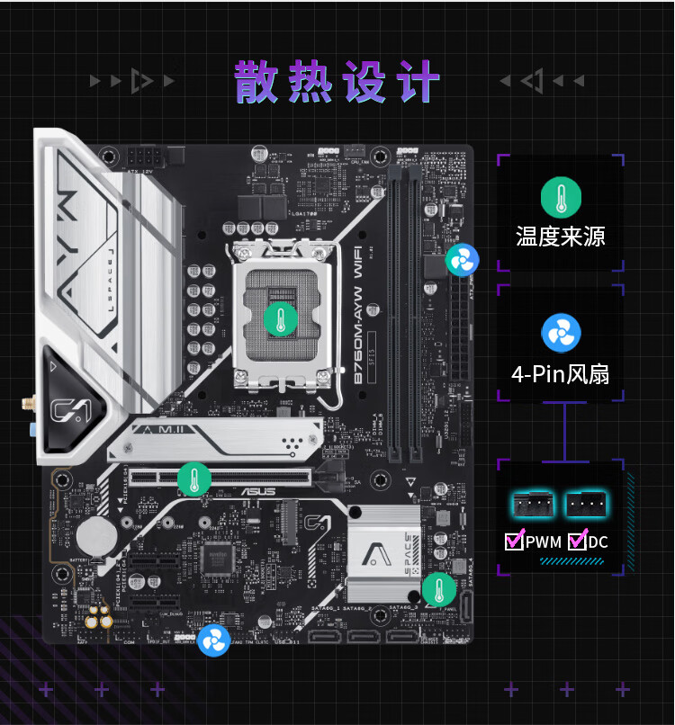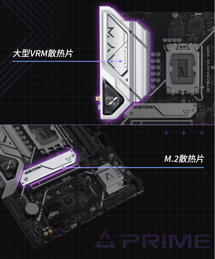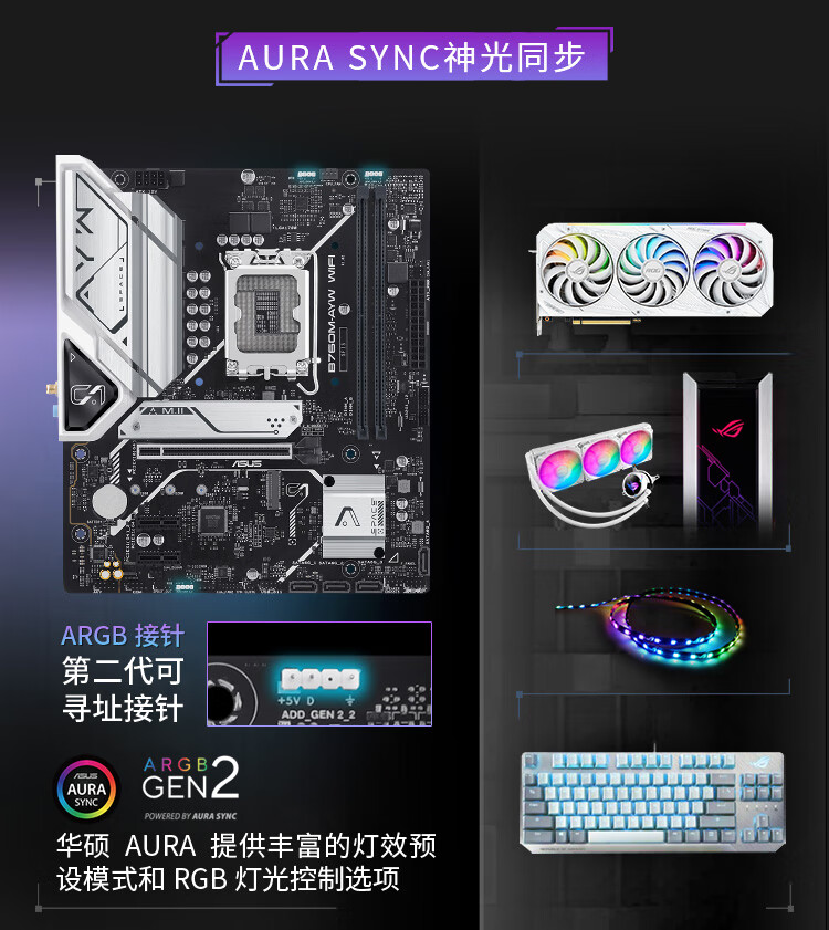 华硕B760M-AYW WIFI D5 哎呦喂主板 电竞游戏主板 全新盒装台式机电脑主板(支持英特尔13代CPU)单主板盒装