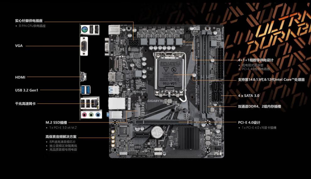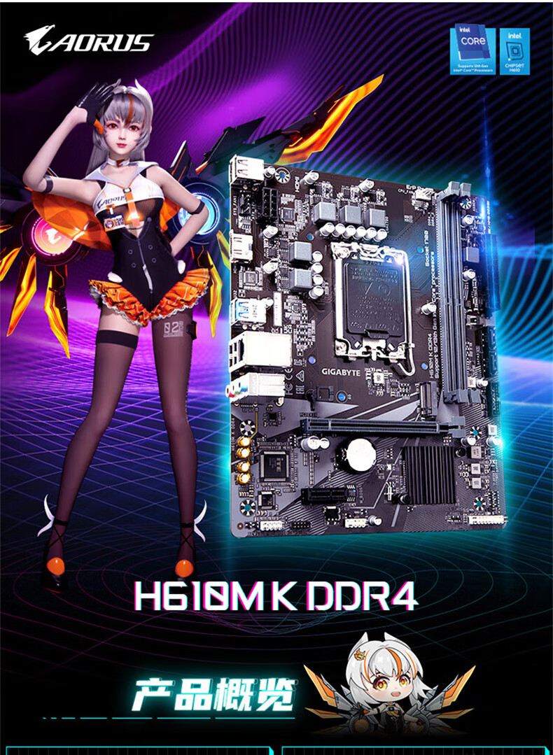 商品名称:技嘉 H610M K DDR4 台式电脑主板 支持12代i3 12100F i5 12400F H610M S2 DDR4组装电脑升级主板全新正品