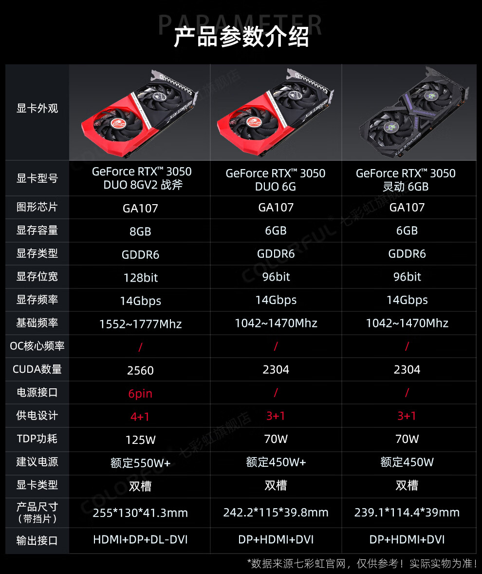 商品名称:七彩虹Colorful RTX3050 6G灵动鲨 单显卡 GDDR6台式电脑主机吃鸡设计游戏显卡