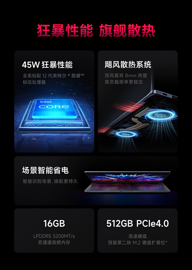 商品名称:小米笔记本电脑 红米 RedmiBook 16 2024 酷睿标压I5-12450H 高清屏 轻薄本 16G内存 1TB固态 高清屏 灰