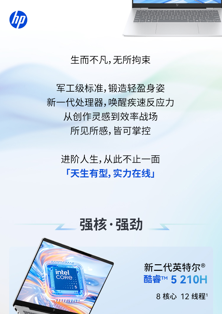 商品名称:惠普HP 星Book Pro 轻薄本办公笔记本电脑酷睿Core5-210H/16GB内存/1TB/银色[14-fs0012TU]
