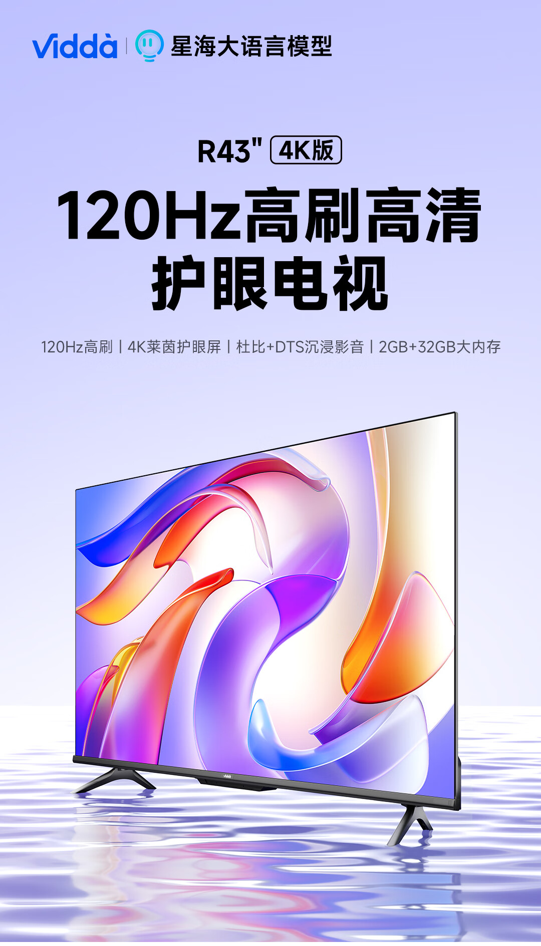 商品名称:Vidda R43 4K版 海信电视 43英寸 超高清超薄电视 2+32G 全面屏智慧屏智能液晶电视43V1ND-R