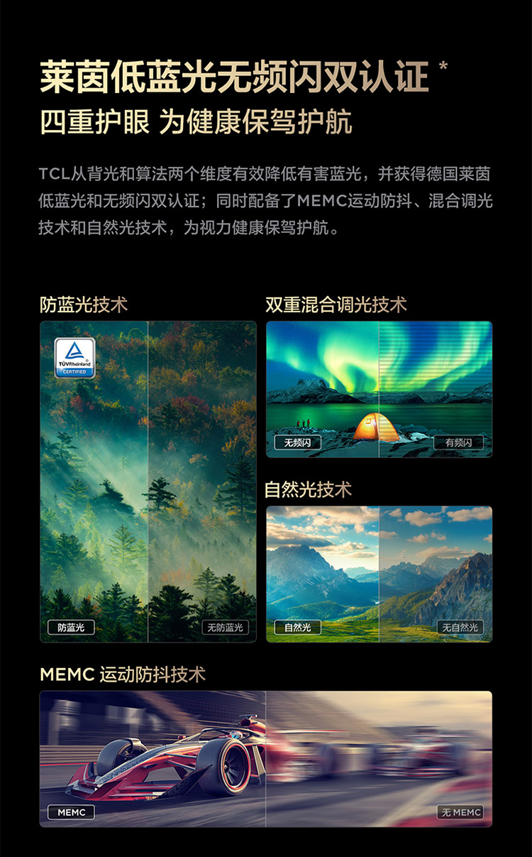 TCL电视 55V8L Pro 55英寸 144Hz QLED量子点 3GB+64GB大内存电视