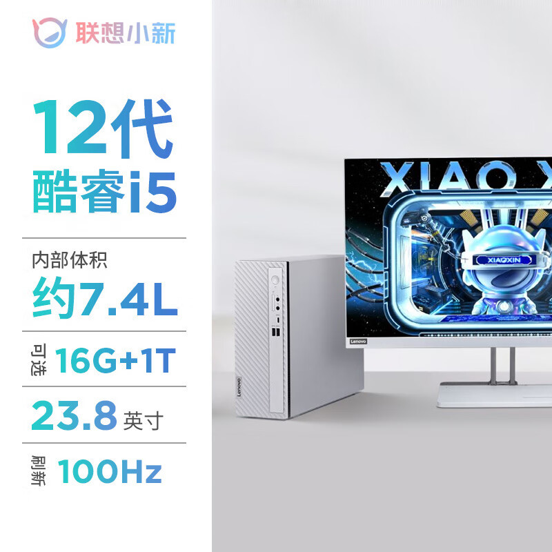 联想(Lenovo)小新台式电脑整机(酷睿i5-1235U 16G内存 1TB高速大容量固态硬盘 Win11 正版office)23.8英寸显示器