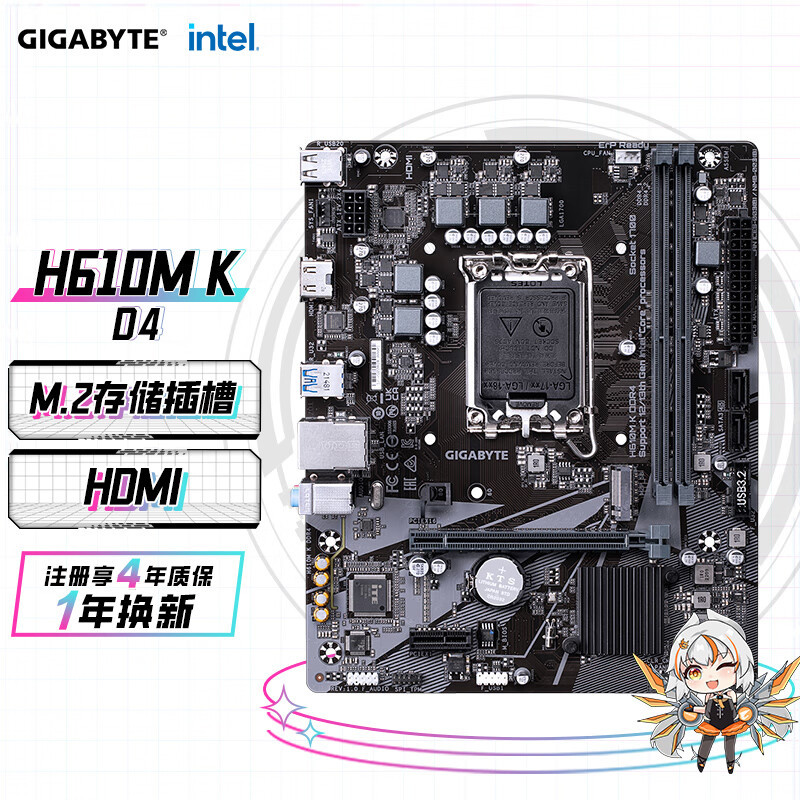 技嘉 H610M K DDR4 台式电脑主板 支持12代i3 12100F i5 12400F H610M S2 DDR4组装电脑升级主板全新正品